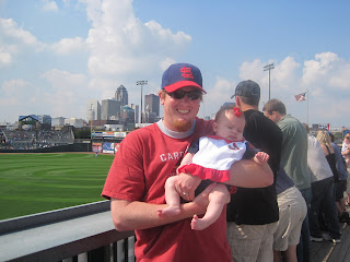 We had absolutely beautiful weather on Labor Day, so we decided to take Harper out to her first baseball game. Of course, it's only AAA Iowa Cubs, but it was a good start to get her used the big ball games. Now she'll be ready should the Cards make the World Series in October : )
